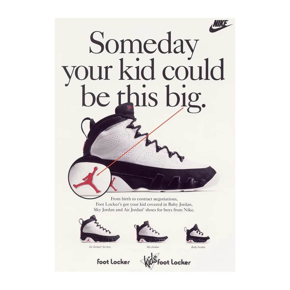 The Air Jordan 9, designed by Tinker Hatfield, with the help of Mark Smith, pushed the boundaries with design. The shoes told the story of Michael Jordan as an “International Icon” featuring foreign languages from heel to toe on the outsole. A total of six different languages appear on the sole of the shoe. With the aid of graphics and foreign languages, the soles of the shoes told the story of how basketball became an international game and MJ a global ambassador for the sport.